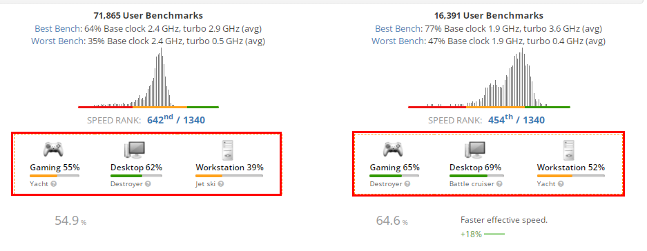 오른쪽 모델이 I5모델임에도 성능이 좀더 우위에 있다는걸 알수 있습니다.