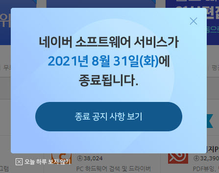 2021년 08월 31일자로 네이버에서 운영하는 소프트웨어 자료실(software.naver.com) 운영이 종료되었습니다