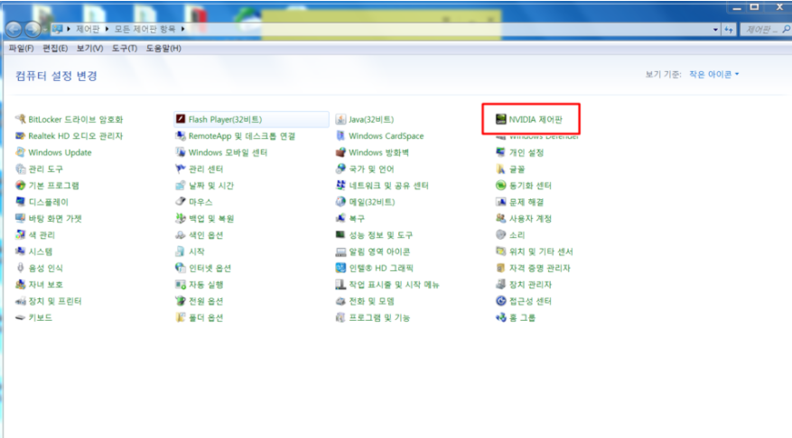 제어판 -> NVIDIA(엔비디아) 제어판 클릭
