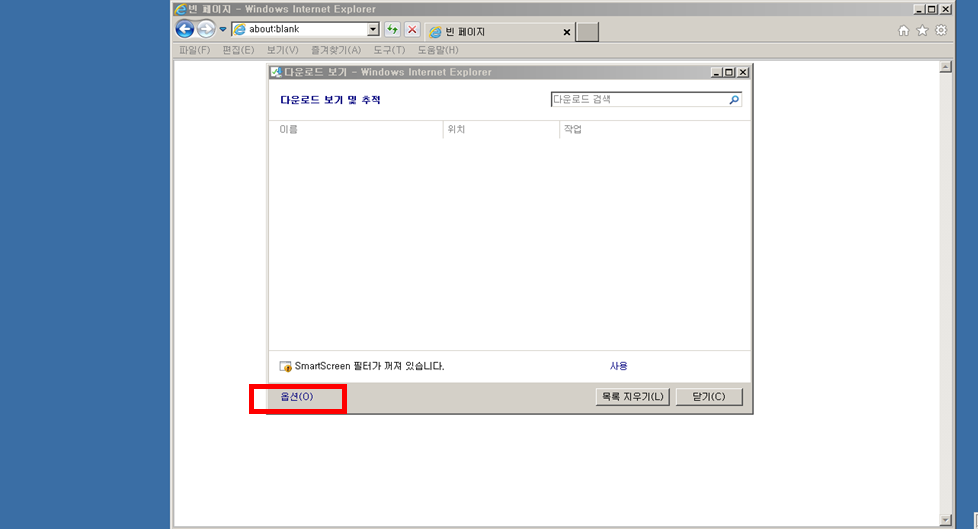 다운로드 보기 창의 하단 “옵션” 버튼 클릭