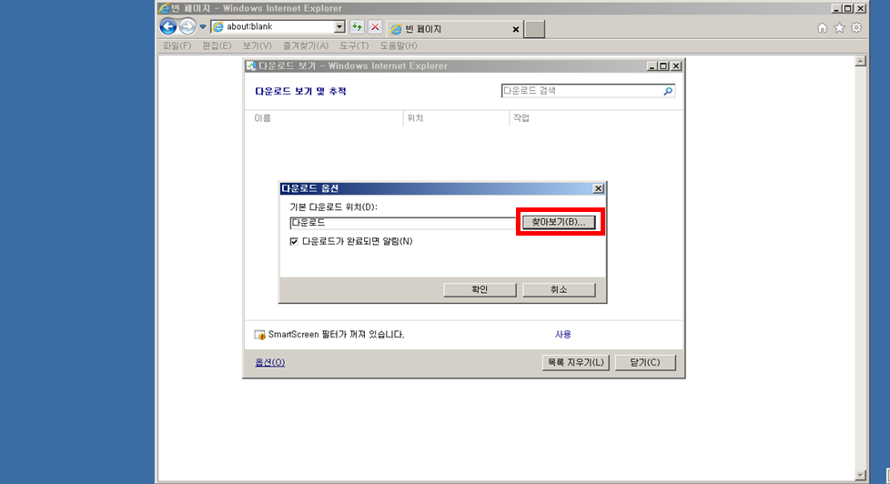 익스플로러 다운로드 위치 변경 방법