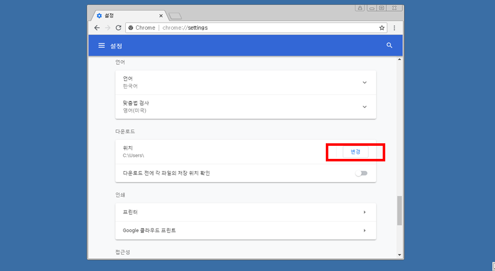 Chrome(크롬) 다운로드 위치 변경 방법