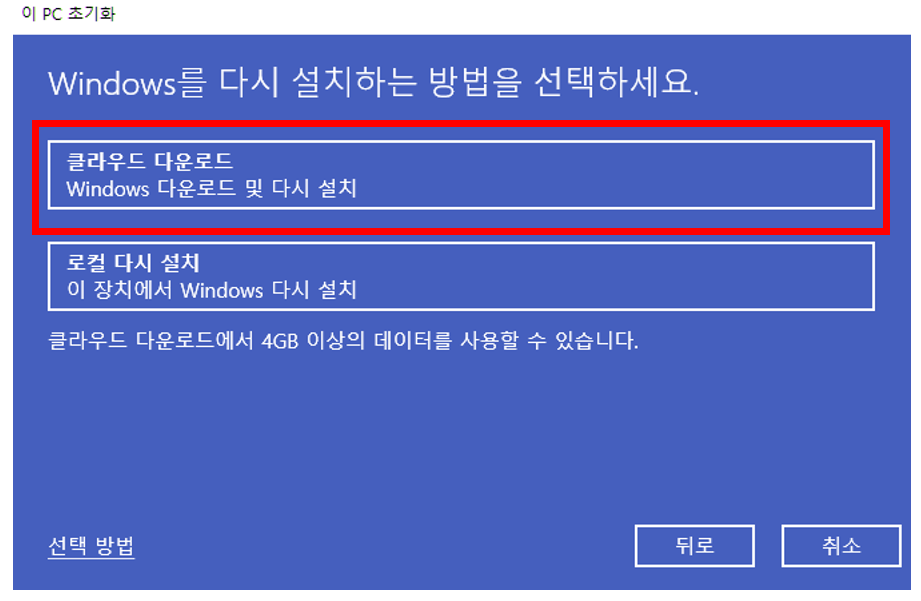 * 윈도우 초기화 전 중요 프로그램이나 파일은 USB 혹은 외장하드, 클라우드 저장소에 백업하시기 바랍니다.