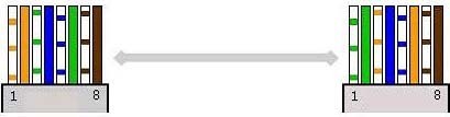 다이렉트 케이블(Straight-Through Cable) - 서로다른 매체를 사용할 때 사용하며
